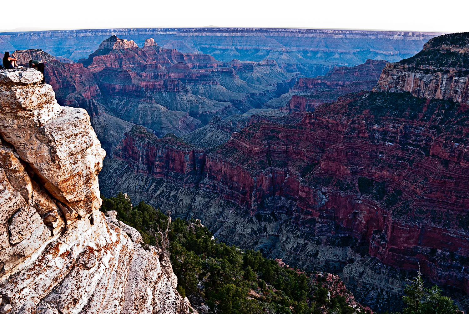 Sunset at North Rim is better than most anywhere else I've been. The relatively small crowd (the isolated North Rim gets a fraction of South Rim's visitors) gathers at the lodge to photograph the changing canyon hues and shafts of golden light. You can hear most any language but the Germans seem to love the canyon more than anyone. You can hear them marvel at sinking sun as it finds its way to the rim. I never tire of photographing the rim at sunset though I prefer to capture instead the images of the guests reacting to it. After many canyon sunsets, it's the people's response to it that’s most interesting to me.