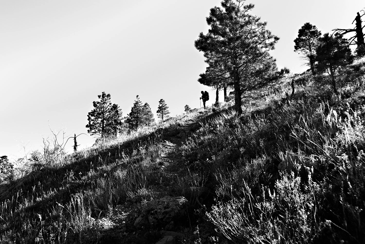 Every so often he'd stand up there on some damned perch and wait for me. Gasping for air that wasn't there, I'd catch up. The air was getting thinner by the minute. "Are we...going...straight...up...this goddamn...#*!&$#@...mountain?" I asked him.